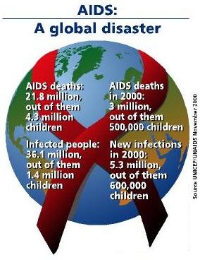 En 1988 la Asamblea General manifestó su profunda preocupación por el hecho de que el síndrome de inmunodeficiencia adquirida (SIDA) hubiera adquirido proporciones de pandemia. Tomando nota de que la Organización Mundial de la Salud (OMS) había declarado el 1º de diciembre Día Mundial de la Lucha contra el SIDA, la Asamblea destacó la importancia de la observancia adecuada de esa ocasión (resolución 43/15). Actualmente hay unos 22 millones de personas que viven con el VIH/SIDA, mientras el número total de defunciones debidas al SIDA en todo el mundo ha llegado a 6 millones