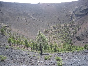 Las escarpadas paredes del gigantesco cráter ascienden hasta más de 2000 mts coronadas por el Roque de los Muchachos (2426 mts), en cuyos alrededores se encuentra el Observatorio Astrofísico Internacional.